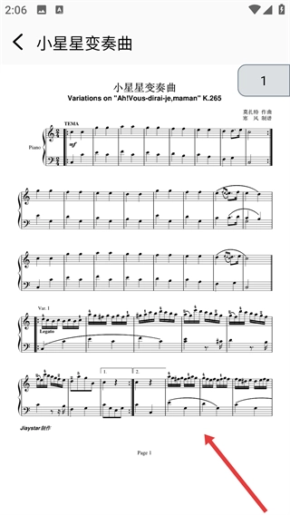 4、进入《小星变奏曲》的曲谱详情页,就能查看对应的钢琴曲谱内容,可用于钢琴演奏或学习。