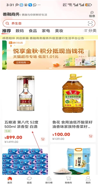 2、金融服务:作为建设银行推出的平台,善融商务提供了多种金融服务,如分期付款、信用卡支付等,方便用户灵活选择支付方式。
