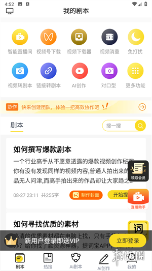 1软件安装完成后进入首页,直接点击进入剧本板块,即可使用多种功能。