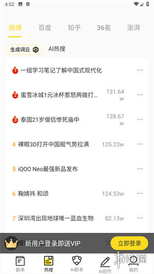 2用户能够查看热门话题,同时也能使用微博、百度、知乎等平台。