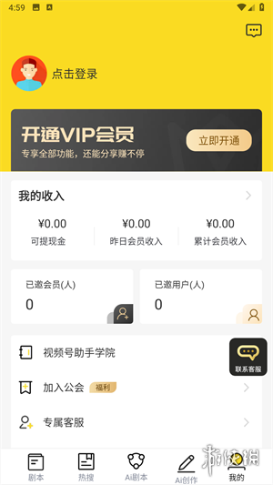 4进入个人中心页面,能便捷地查询自己的收益情况,同时还有专属客服随时为用户提供问题解答服务。