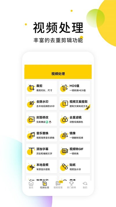 支持视频编辑、修改MD5值、视频倒放、视频变速、视频镜像、视频合成、视频转GIF图等多种功能。