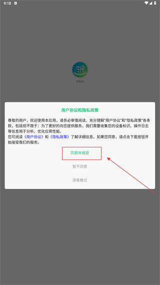 1、点击【同意并接受-按钮】,确认用户协议和隐私政策。