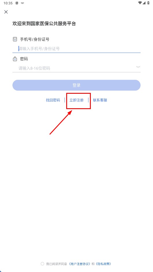 3、在登录页面,点击【立即注册-功能按钮】,进入注册信息填写页。