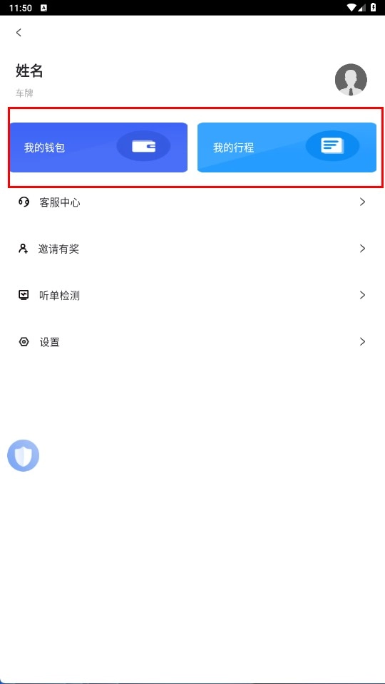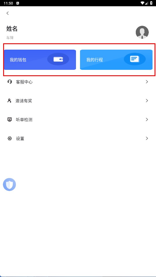 4、在个人页面,可点击【我的钱包-功能按钮】或【我的行程-功能按钮】,查看钱包和行程信息。