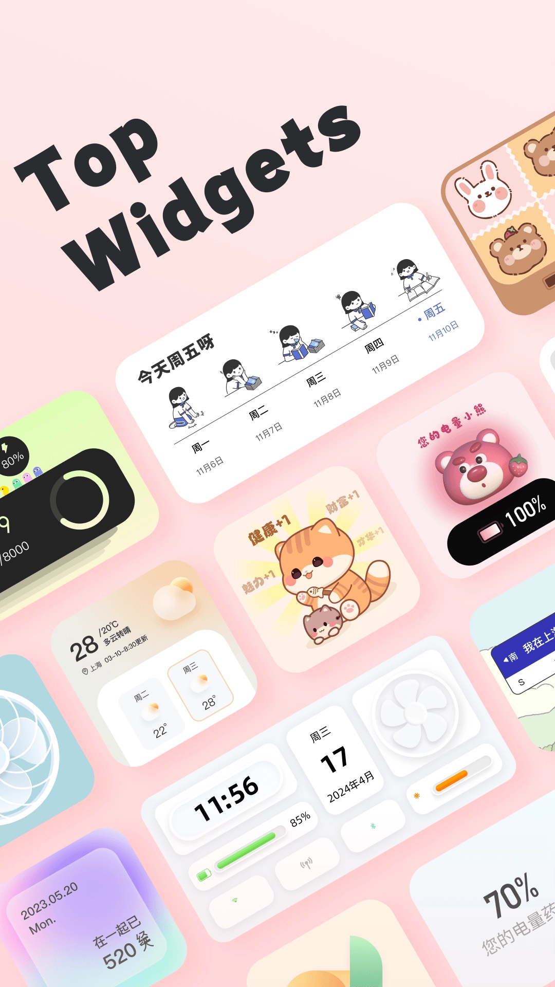 3、Top Widgets还配备了多样的主题与皮肤选项,用户可根据喜好挑选,以此让手机界面更具美感与个性。