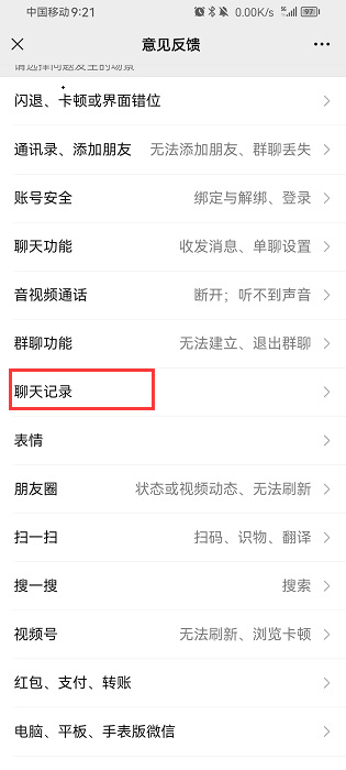 4、从“意见反馈”点进来后,点击“聊天记录”