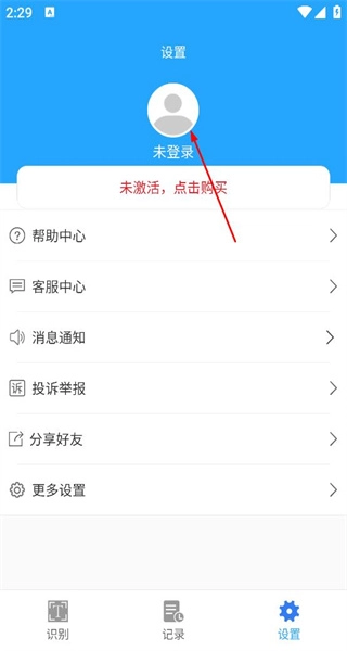 2、进入设置页面后,点击未登录状态下的头像,即可跳转至登录界面,在该界面中可以选择微信登录等多种登录方式。