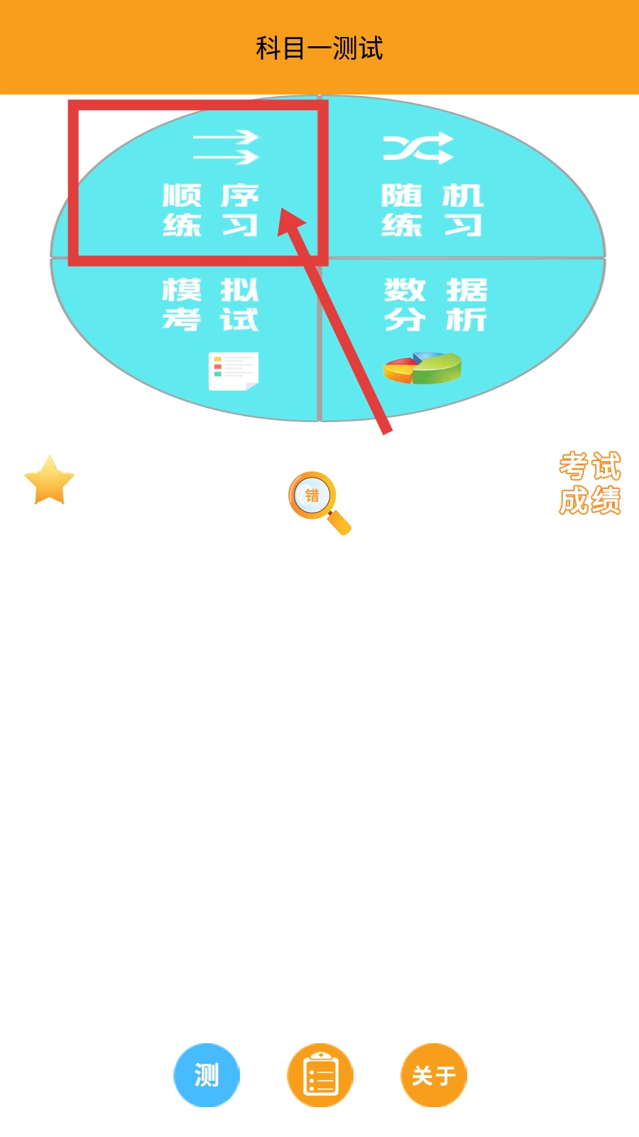 1、进入科目一测试界面后,找到并点击【顺序练习-模块】选项,即可进入对应的练习页面。