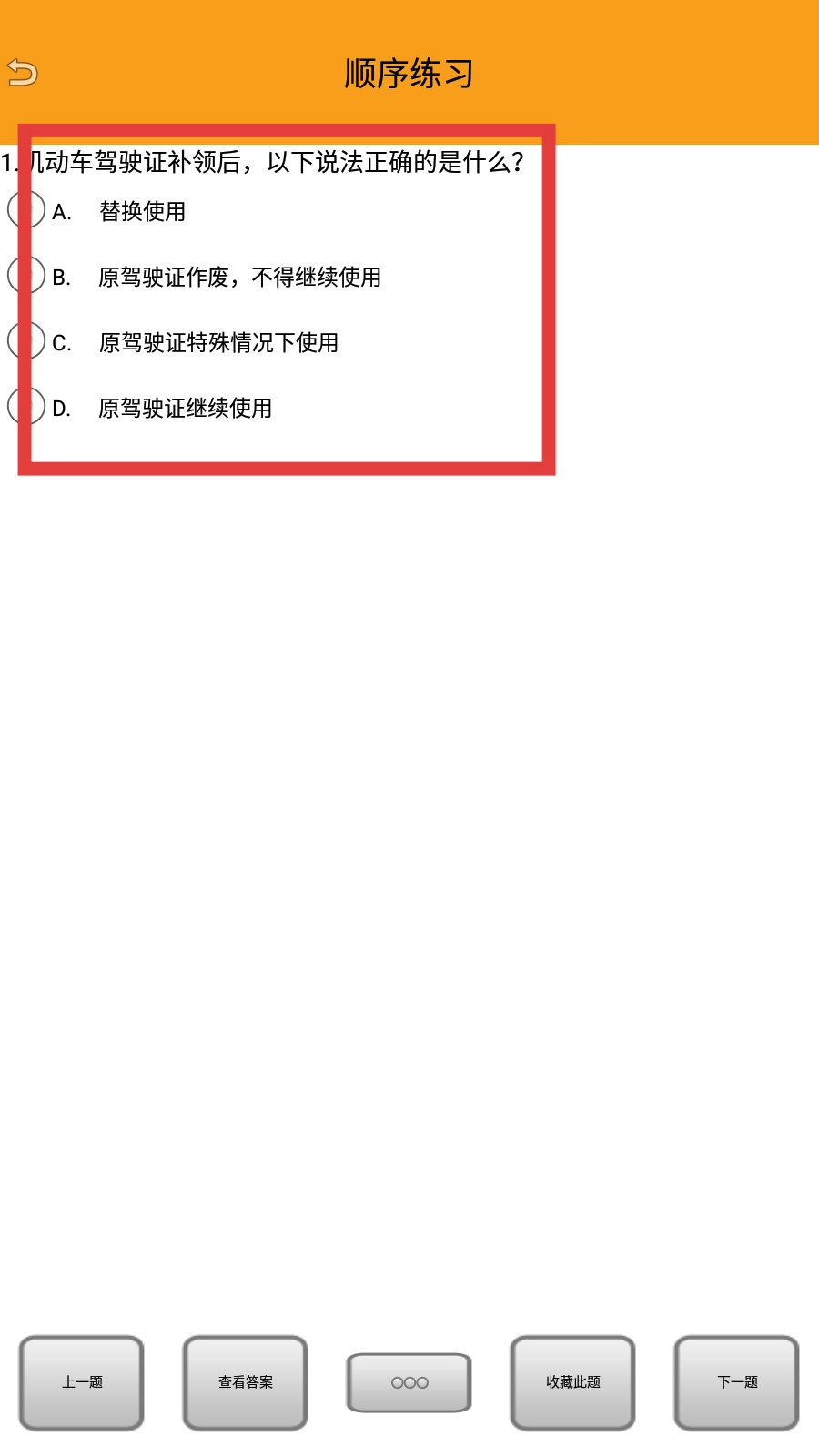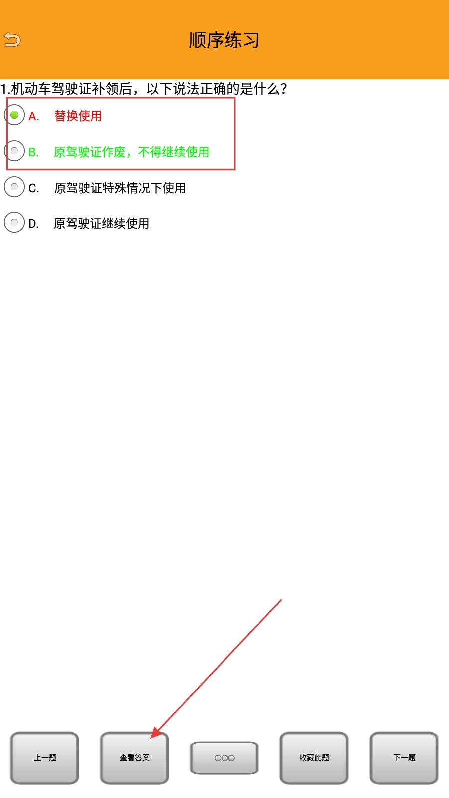 2、在顺序练习里,查看题目后选择对应的选项。