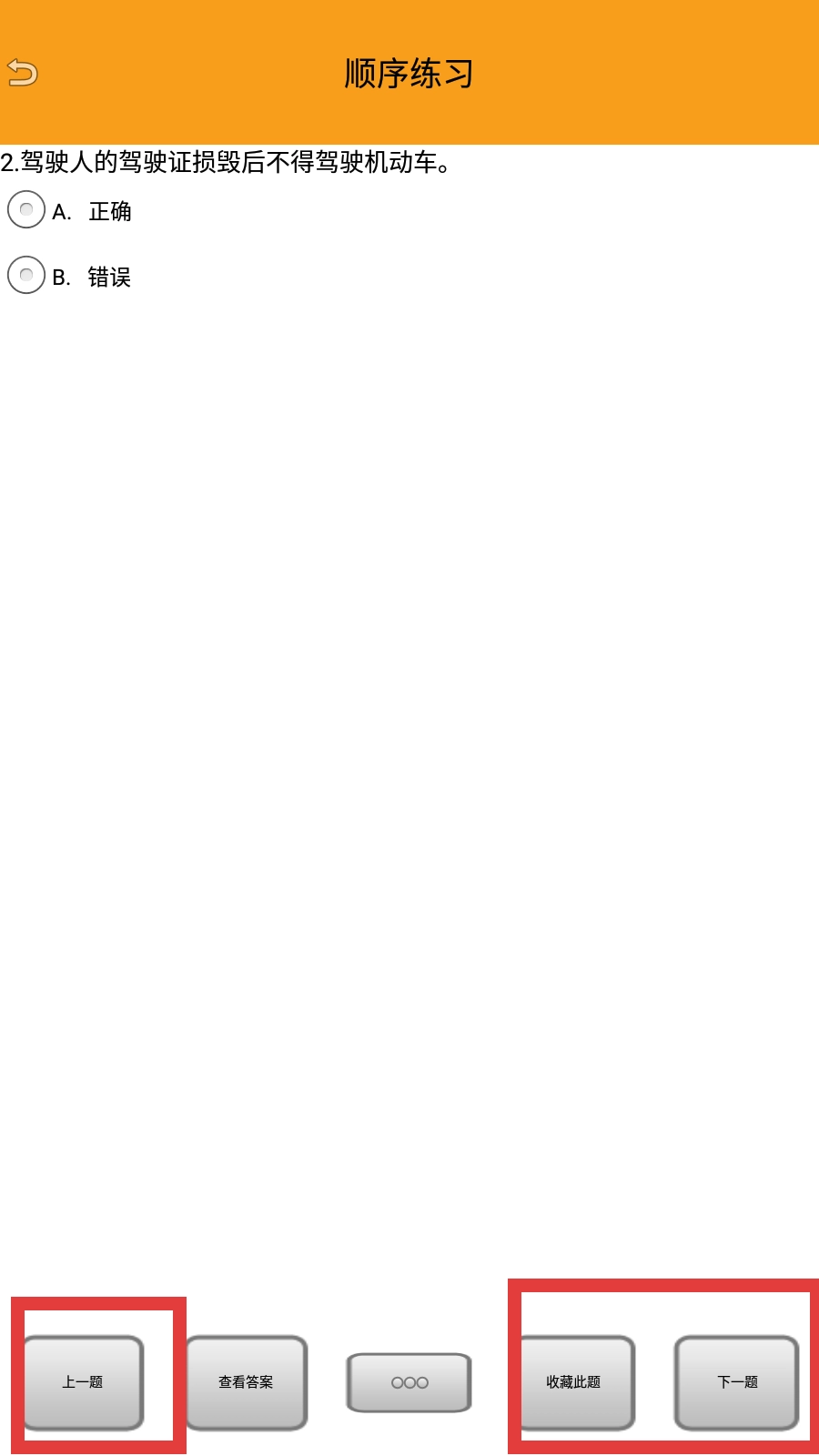 4、可以点击【上一题-按钮】回顾之前的题目,或者通过【下一题-按钮】继续进行练习,同时也能够收藏当前题目。