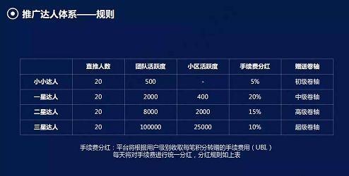 赞丽生活平台的推广奖励采用百分比分红机制,当直推人数满20人且团队活跃度达到500时,即可获得5%的手续费分红。