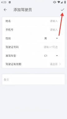 4进入驾驶员添加界面后,按顺序录入各项所需内容,全部填写完毕后,点击页面右上角的确认图标,就能完成该驾驶员信息的新增操作。