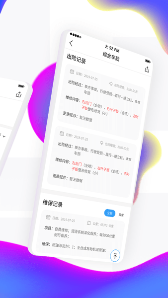 4、车辆状况信息公开透明,包含出险记录与维保记录,多维度展示车辆的整体综合情况;