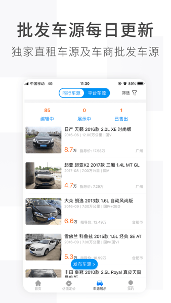 2、同行车源:为车商提供免费展示数据的支持,助力其拓宽销售渠道、缓解库存压力,从而推动交易达成。