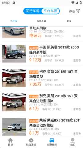 3、双重估价体系,车源专栏配备同行车源与平台车源两类估价模式,参考维度更全面;