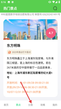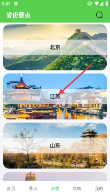 1、在首页底部导航,点【分类】,进入省份景点页。