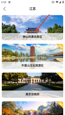 3在江苏地区的景点汇总页面中,找到并点击【钟山风景名胜区】这一选项,即可跳转至该景点的实景展示页面。