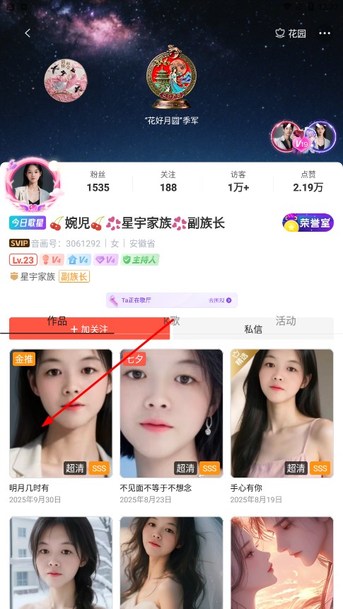 2、在歌手榜的榜单页面,点击排名较为靠前的歌手,例如【婉児-歌手名称】,即可进入该歌手的主页。