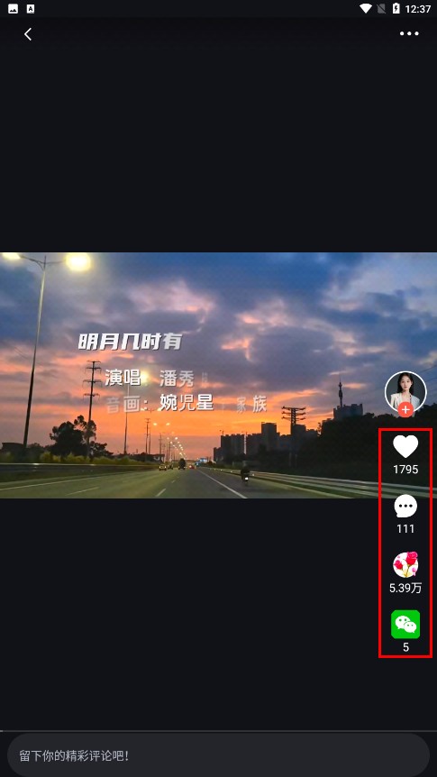 4、在作品的播放页面,用户能够完成点赞、评论、分享等操作,例如点击心形图标就能实现点赞功能。