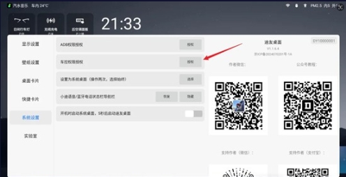 授权成功后稍作等待,大约2到3秒的时间,系统就会提示车控授权已经完成,此时导航栏上的空调、温度、胎压等各项状态信息都会自动同步显示出来。