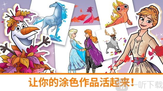 2软件里包含大量迪士尼的人物形象与造型设计,家长能依据孩子的年龄情况,为其挑选合适的图案,再让孩子自主选择颜色进行填涂。