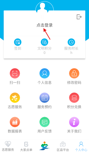 1首先启动重庆文明实践应用,进入主界面后,在界面底部区域找到“个人中心”入口,点击该入口即可进入对应的页面。