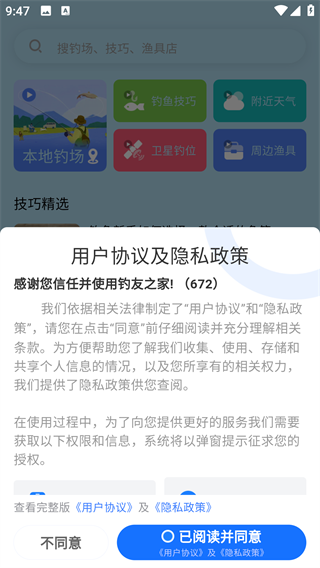 2平台首页整合了多项实用功能,包括周边垂钓场地查询、钓鱼技能分享以及实时天气信息等服务。