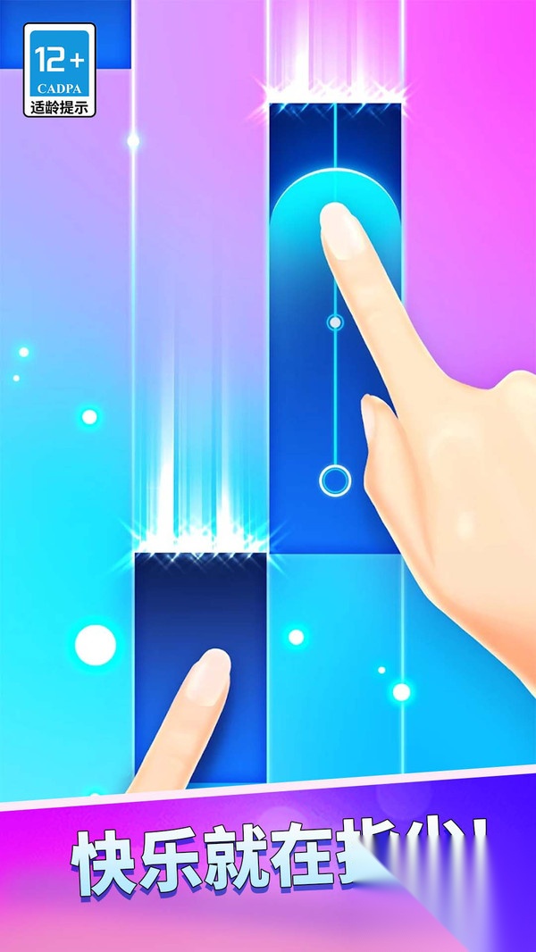 2. 玩家可把手指置于屏幕,随后依据音乐的节拍,点击出现的黑白钢琴块。