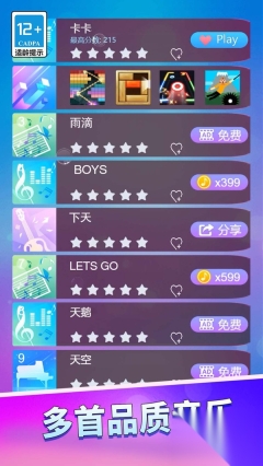 2每一首乐曲都具备独有的节拍与曲调,参与者能够借助挑选不一样的音乐,感受多样的游戏形式和考验。