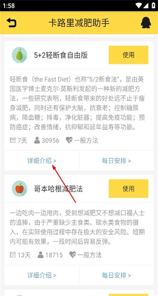 2、接着浏览软件界面,发现5加2轻断食自由版、哥本哈根减肥法等多种减肥方案,对每种方法的具体介绍进行了了解。