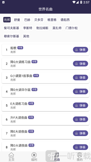 6. 演奏功能:大量钢琴练习曲目,支持跟随手机端的演示逐步学习弹奏。