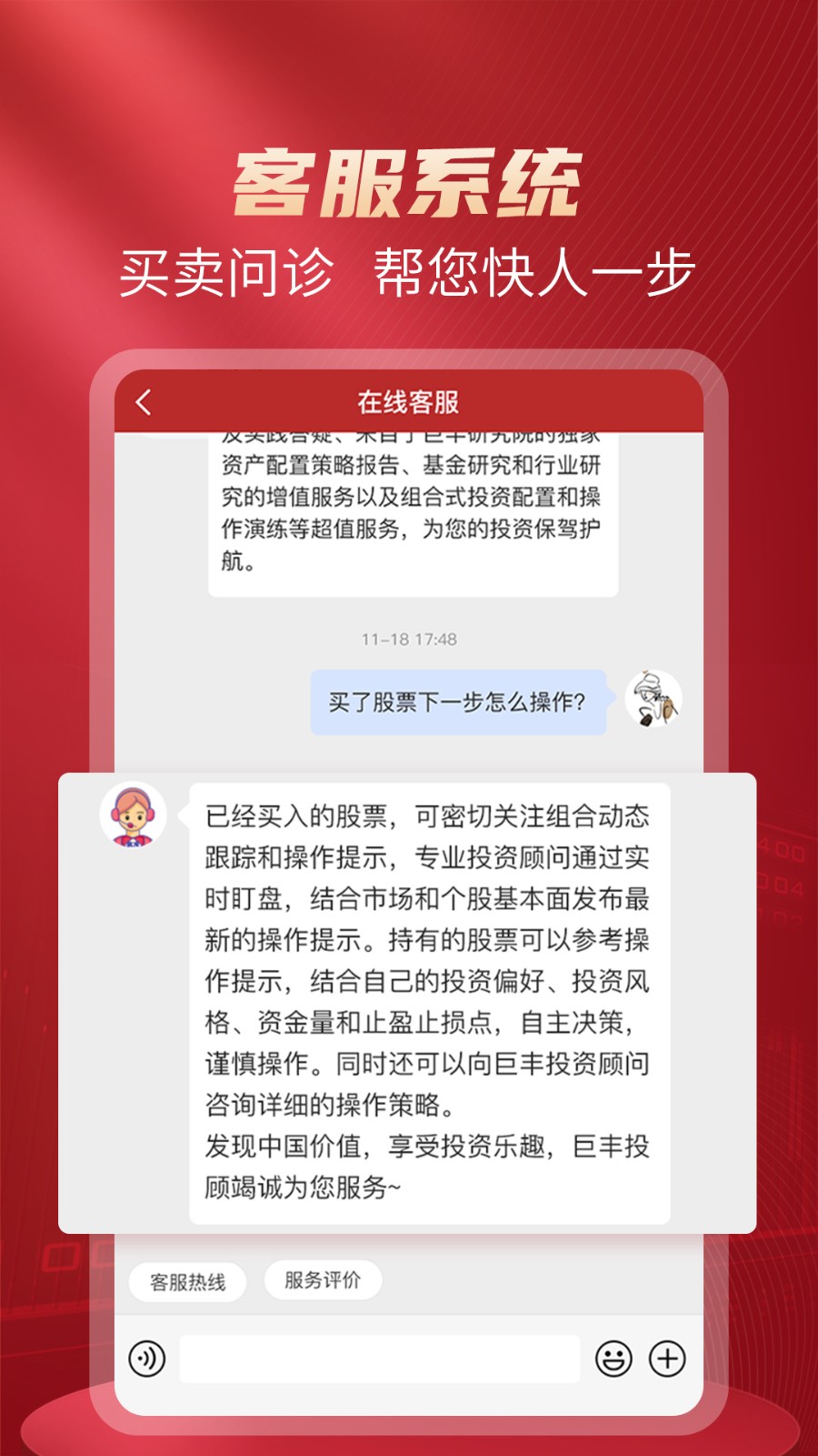 3、客户服务周到细致,能随时随地解答用户疑问,为用户提供全方位的投资支持。