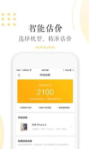 2、线上快速申请手机回收,智能估价;