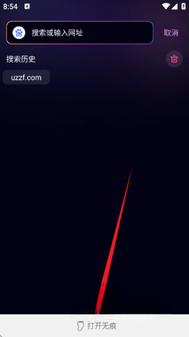 4、若要开启无痕模式,只需点击搜索框底部的【打开无痕】按钮即可。