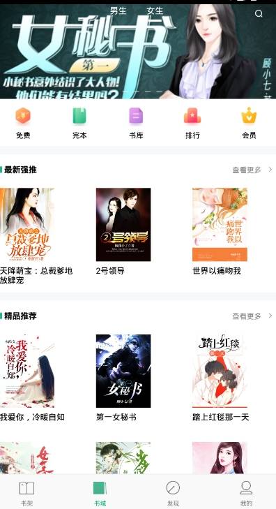 3、系统还专门设置了男女不同的频道,能够为用户推荐更合适的小说
