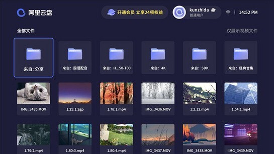 4.登录成功后,能直接看到网盘中存储的文件。使用遥控器挑选想要观看的视频,选中之后,直接点击就能播放。