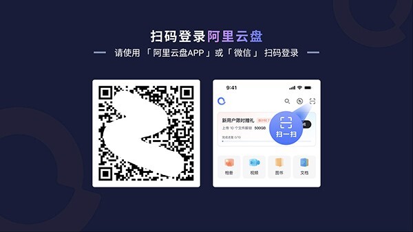 1. 启动阿里云盘TV版应用程序,通过微信账号扫码完成软件登录操作