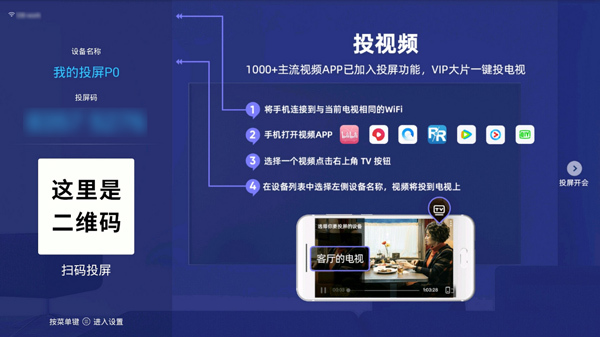 1请注意手机端和电视端需处于同一WiFi环境中。