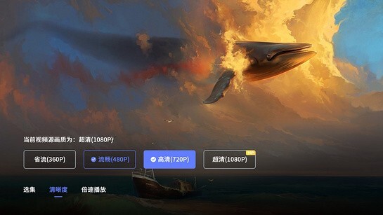 2打开阿里云盘应用,找到你想投屏的视频并点击播放,接着在播放界面选择合适的清晰度选项。