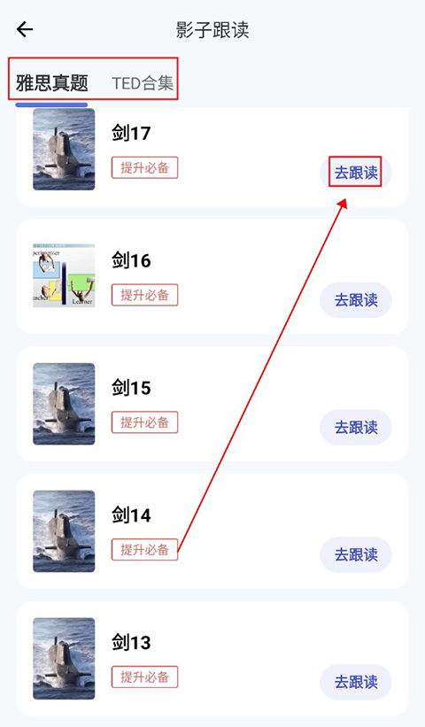 接下来,用户需挑选一门用于跟读练习的课程,选定后点击该课程就能进入相应的学习界面。