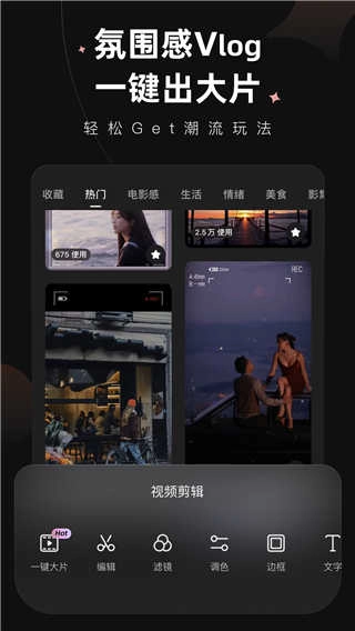 高级质感的人像大片、温柔情绪的Vlog、潮流炫酷的视频玩法,一键即可掌握,开启视频剪辑新体验