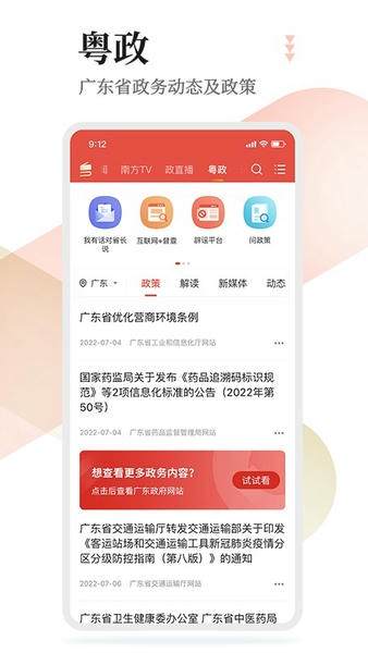 2、通过“粤政”频道查询政策解读与办事指南,提前预约线下办事网点节省排队时间,借助“大湾区政策通”等功能获取精准政务服务。