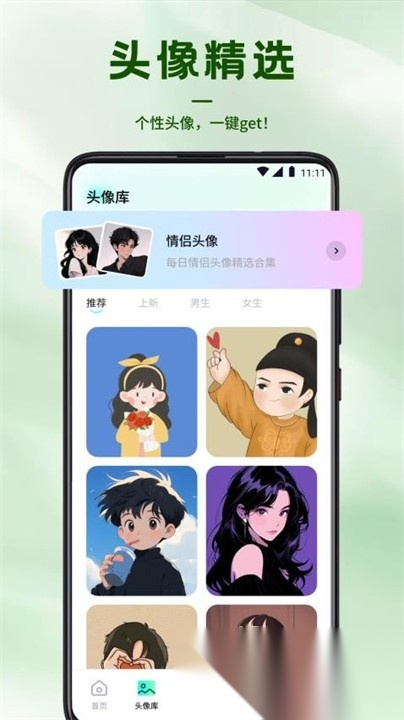 1)除了壁纸,软件里还能找到各类精美头像,助你玩转朋友圈,成为最亮眼的存在。