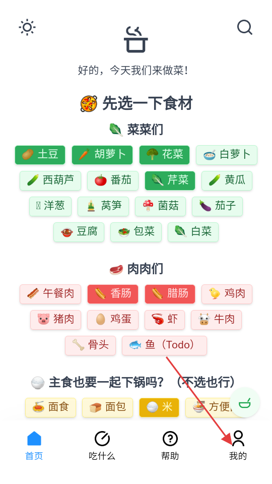 1打开应用后,在指定区域填写自己手头有的食材以及能使用的烹饪工具,保证这些信息无误,这样才能为后续生成适配的菜谱准备好必要的数据支撑。