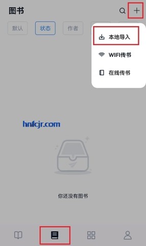 2接着要添加图书:找到“图书”页面右上角的“+”按钮,然后可以选择“本地添加”的方式,或者借助WiFi来便捷地传输书籍。
