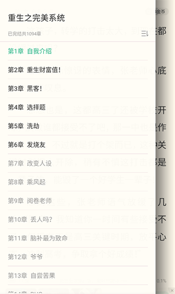 3、点击下方目录选项即可在左侧弹出本小说目录供您查看。