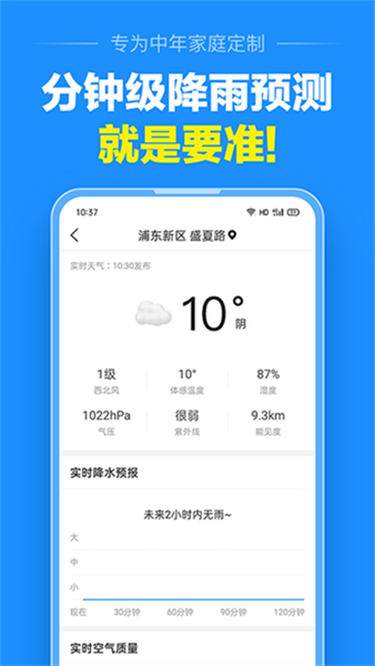 3、它提供周到的基于场景的服务,根据城市自动定位,并立即发送有关天气变化的信息。