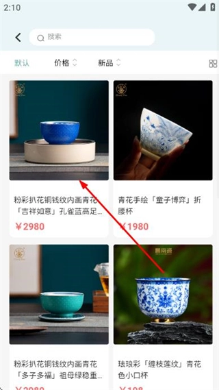 2、在茶具列表页面点击目标商品,进入该商品的详情页面。