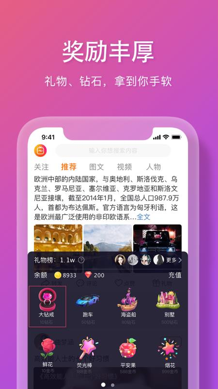 6可以给心仪之人赠送礼物,也能吸引欣赏自己内容的粉丝。